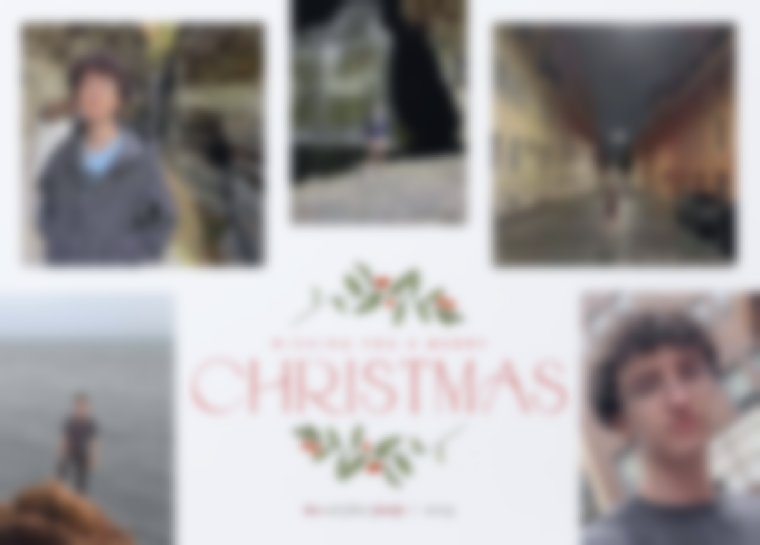 A single Christmas card. Each year is a different design and features pictures taken during that year.